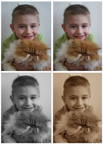 I received a comment today in my blog from Teri, so I followed her to her blog I was totally inspired by it! I will be returning often, in fact I added it to my Favorite Blog list on my blog sidebar. She does amazing things to her Photographs! I only wish I could be as good as her, ooo and she has my DREAM camera, the Nikon D70 :) . She shares with you how she changes the textures and highlights her pictures using photo enhancing software. I have adobe photoshop Elements, which came with my Digital Rebel. She also lists some helpful websites in her blog to learn more about what you can do with your Photos. I was so inspired that I took a stab at trying to enhance a picture 4 different ways, mine are nowhere near as good as hers, I was actually wondering if she can maybe post in her blog a step by step instruction entry on how she does here's, I love the the glow affect she does on some of her pictures (diffuse), I really want to learn that one oh and her beautiful Blog header Picture, it's so bright and eye catching, I want to learn to get my pictures to do that too lol. Anyways here is my Picture I did tonight (remember this is my first time trying this stuff lol, so it's not the best)...picture order-1. Original2. colored, lightened, and diffused, blurred3. Removed color, light filled the background for an even lighting, diffused4. Removed color, changed color to hues of browns for ageing look, even lighting fill, diffused and sharpened